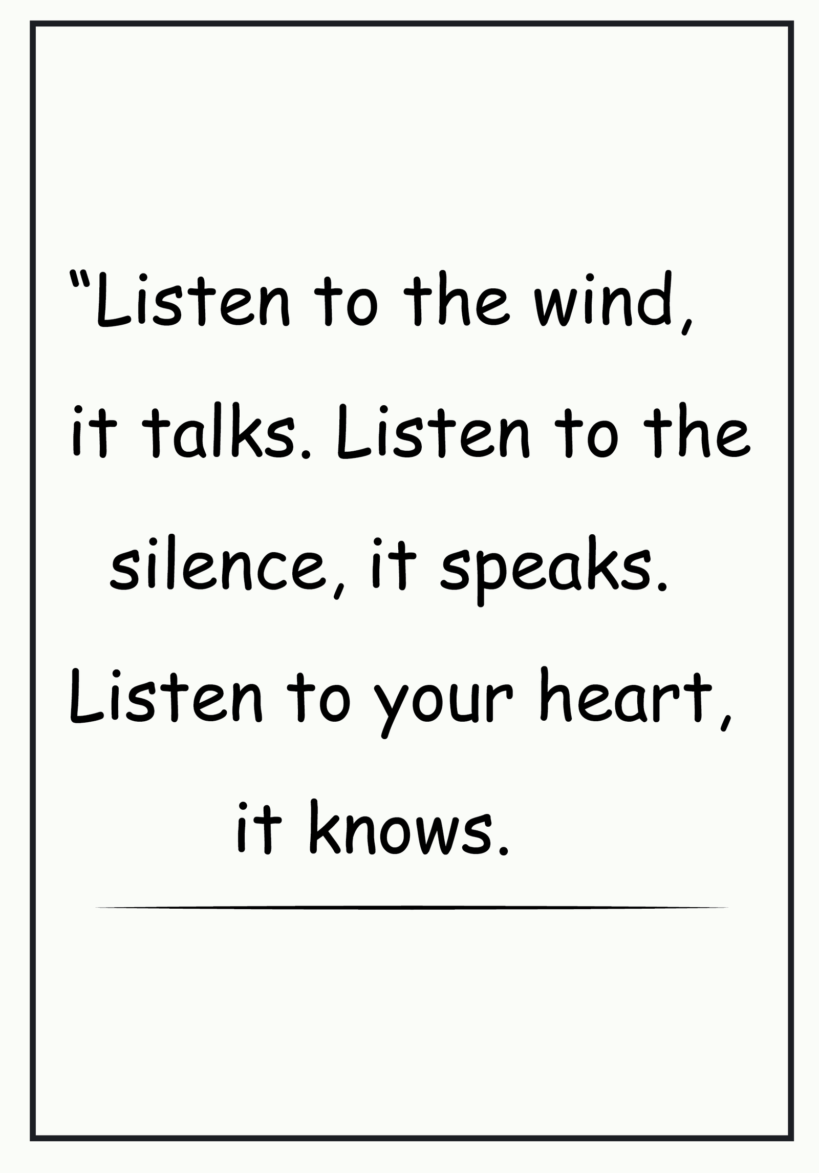 Listen to the wind, it talks. Listen to the silence, it speaks. Listen to your heart, it knows.