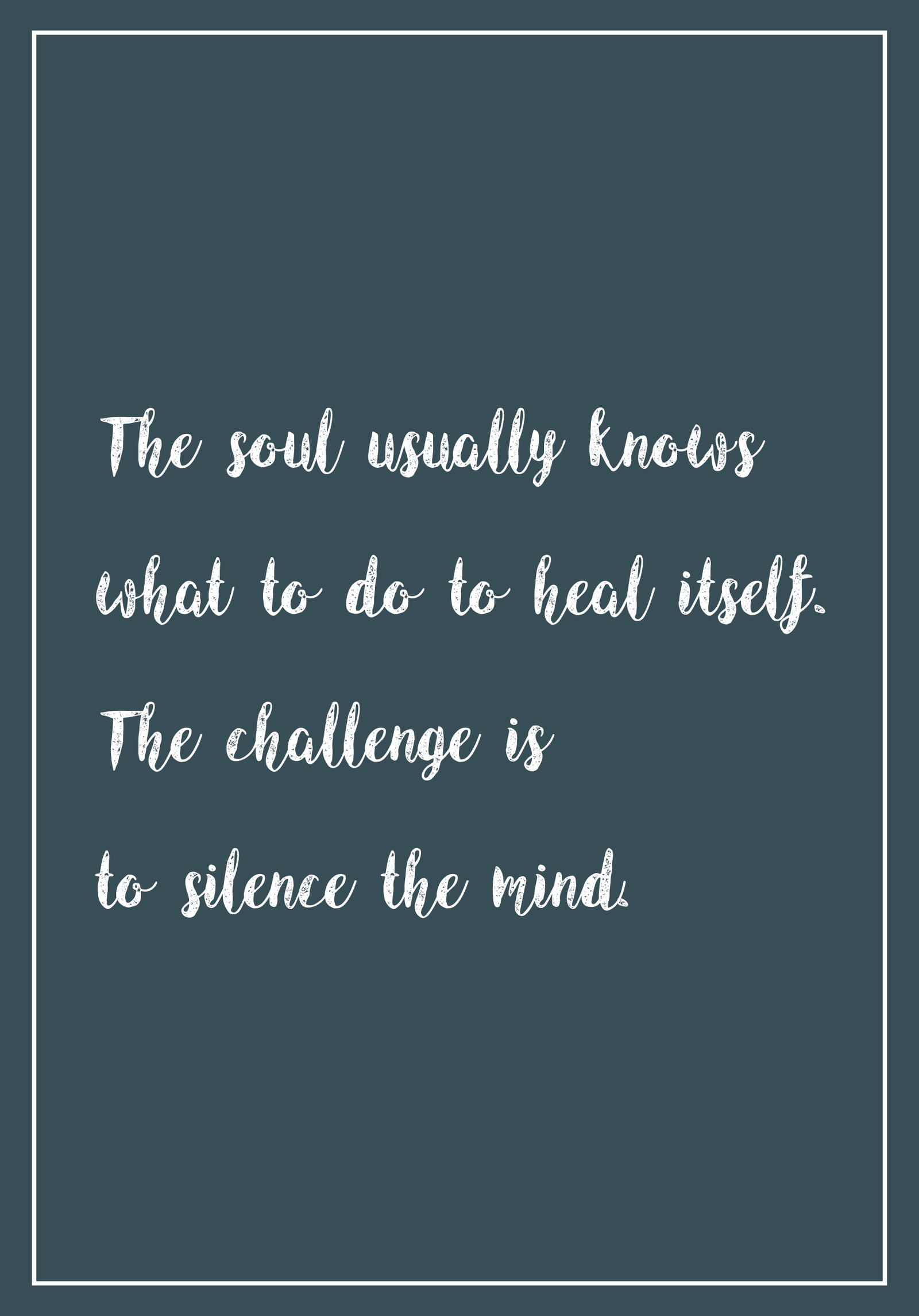 The soul usually knows what to do to heal itself. The challenge is to silence the mind